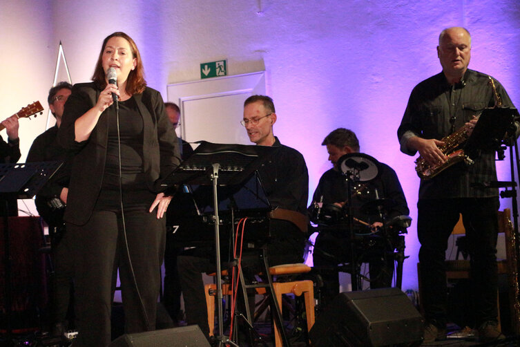 Die drei Chorleiter/innen wechselten dabei sehr geschickt ihre Positionen zwischen Dirigat und Gesang, was wieselflink vonstattenging. Auch die musikalische Begleitung mit Keyboard, Gitarren, Schlagzeug und Oboen war wie aus einem Guss: Klar, scharf, brillant und auch die Artikulation stimmte. Darunter versteht man die motorische Bildung von Lauten und Wörtern. Dazu muss z. B. die Atemtechnik stimmen.