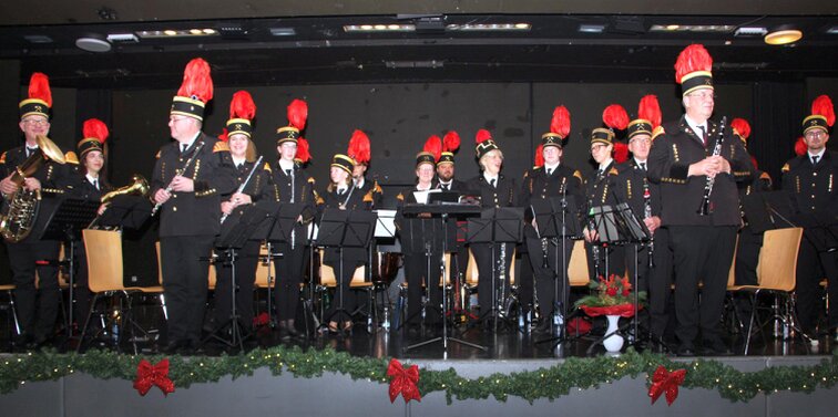 Den Abschluss des Konzertes machten dann wieder die „Großen“ – mit noch sieben Titeln, die nicht mehr in der sonst ausführlichen, abgedruckten Moderation des Programmheftes auftauchen, aber noch einmal einen instruktiven Einblick in das Können der Bergknappen gaben. Von „Advents Fantasie“ über „Merry Christmas Everyone“ bis hin zu „Sweets Bells Fantasie. Und als Abschluss präsentierten die Bergknappen noch einmal den Bergmannsgruß mit ihren feschen Federbuschen, ehe das Publikum restlos begeistert den Heimweg antrat.