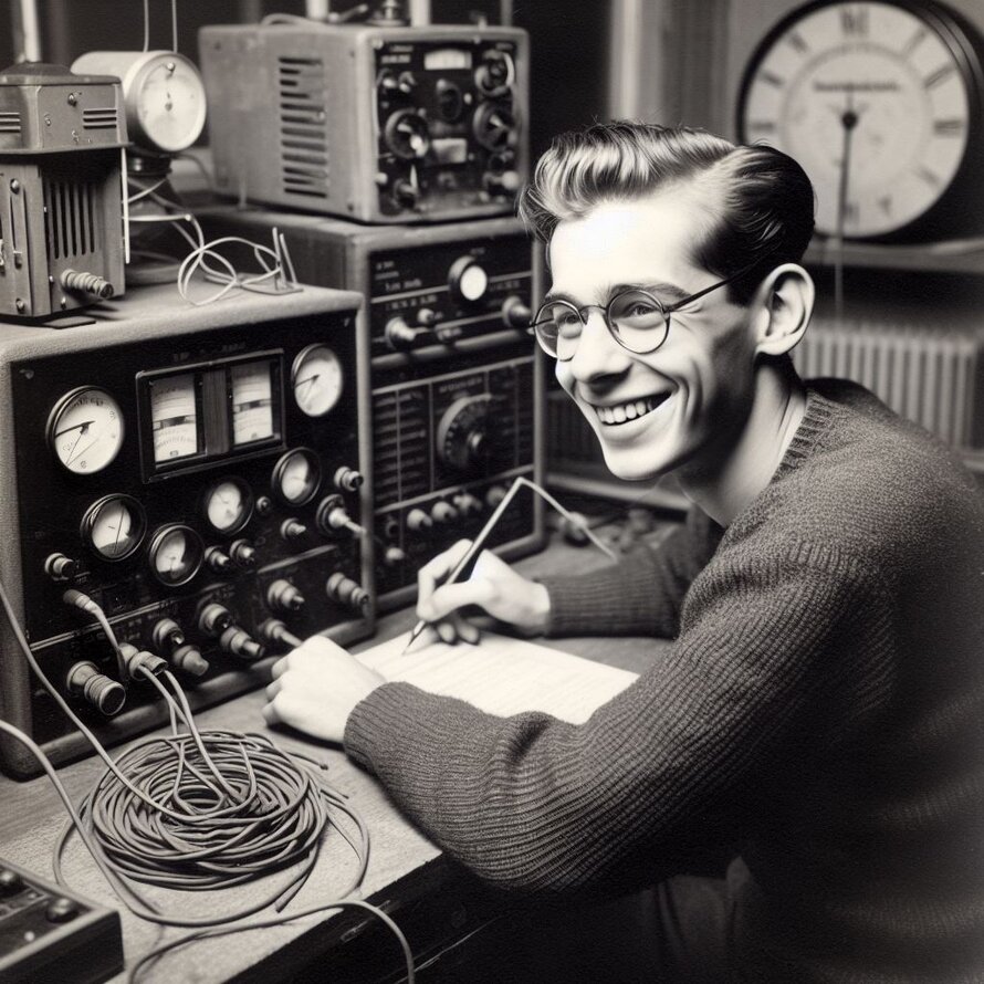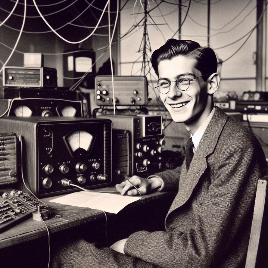 Hier hat mich KI (künstliche Intelligenz) in die 20er Jahre des Amateurfunks versetzt. Tatsächlich sahen die Funkbuden früher ähnlich aus. Und es war durchaus eine solide Technik und nicht so ein Wegwerf-Schrott wie heutzutage aus China