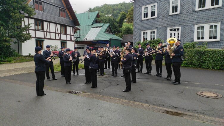 Freunde schmissiger Marschmusik und volkstümlicher Polkas kamen zum Platzkonzert in Sohlbach am „Roten Platz“ am Sonntagmorgen auf ihre Kosten: Nämlich zu den niveauvollen Klängen des Musikzuges unter Vizedirigentin Lorena Käuser, wobei wieder ordentlich die Post abging. Anschließend marschierten Musikzug und die Gastvereine SV Afholderbach, SV Seelbachtal Dreis-Tiefenbach, Schießverein Erndtebrück sowie die Kyffhäuser- und Schützenkameradschaft Kreuztal in einer langen Kolonne zum Schützenhaus.